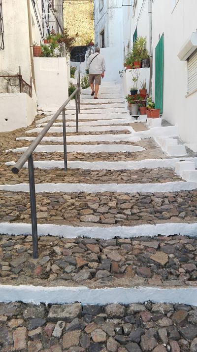 Atalaya guerrera, perimetro encintado, calles blancas, no cabe duda que uno de los pueblos mas bonitos de Portugal. Solo que a diferencia de su competidor Marvao (ambos son almas gemelas) , está más explotado turisticamente y la hace,para nosotros,un poco menos atractiva.