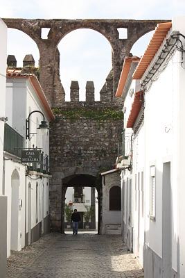 Vimos la capilla de los ossos, la Se, que nos sigue sin gustar por sombría, la Pousada en el convento de los Loios,el acueducto y las murallas.