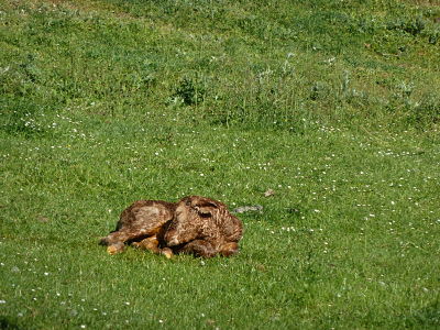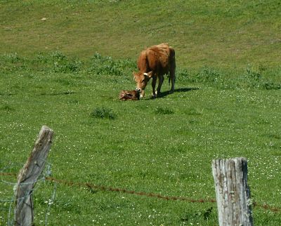 Tuvimos la suerte de ver un ternero recién nacido y su madre aún con la placenta al aire.