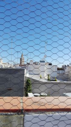 El apartamento,un cuarto grande, pero justo al lado de la Plaza Nueva y con terraza. Antes de ir, me reía de la exigencia de Ana de tener terraza en Noviembre, pero finalmente la hemos utilizado todas las tardes como solarium con vistas a la Giralda. Ha sido uno de los platos fuertes del viaje.