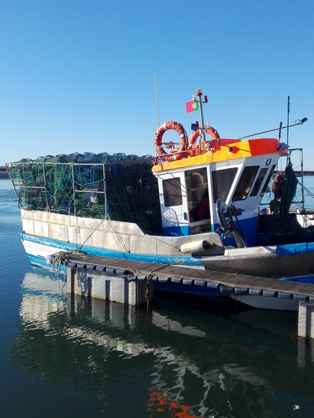 Santa Luzia, Puerto pesquero de bajura, muy especializado en pulpos, y donde pudimos ver (fácil, ya que es todos los días, incluido domingos) la descarga en la lonja y las artes de pesca. Los restaurantes que habíamos seleccionado estaban cerrados. Otro de los problemas del invierno. Durante el mediodía si puedes encontrar de todo, pero por la noche predomina el quedarse en casa.