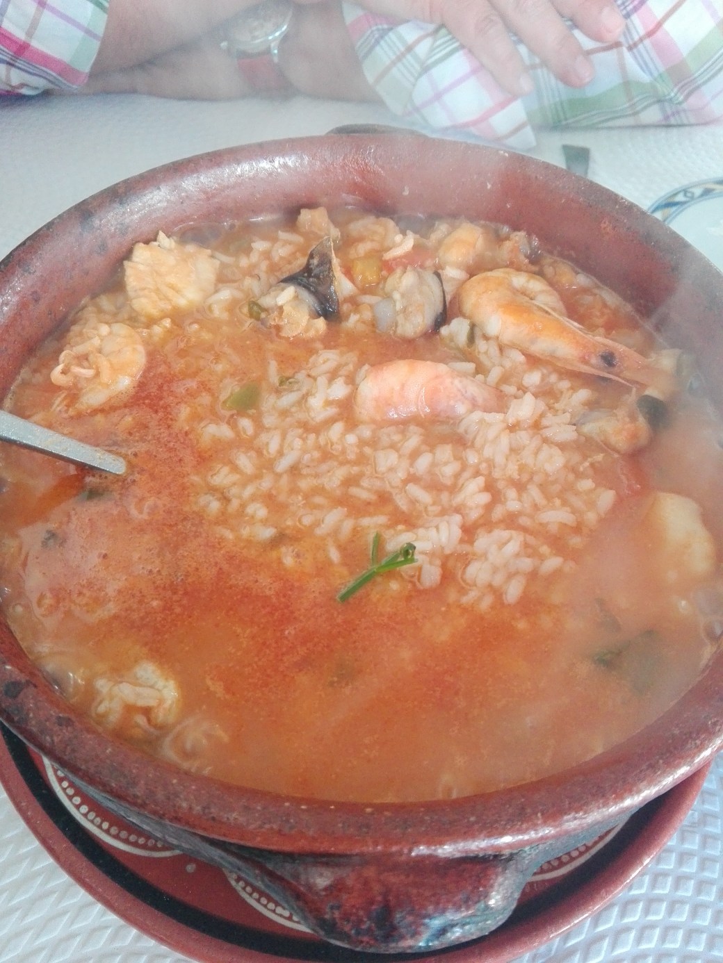 Cataplana que es una característica de la zona , cazo con tapa como si fuera una almeja y que sirve sobre todo para hacer calderetas de pescado. Y el arroz de tamboril (rape), caldoso y espectacular. Nosotros comimos en el Avenida y volveremos.