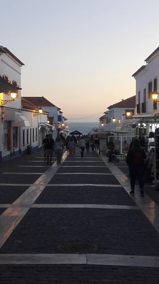 Comporta también estaba de fiestas y el área de AC ocupado. Una población con poco centro y todo desperdigado. Unos bares agrupados donde almorzamos y la sorpresa de ver gente muy chic. Como hippilandia en cool. Y uniformados con vestidos túnicas. De camino a la AC para irnos a la playa nos encontramos con un mercado pijo hippy origen de los uniformes de las chicas que habíamos visto antes. Tarde pero ya nos enteramos que Comporta y su mercado chic forma parte de la modernidad del entorno. Y que te hacia entender el tipo de ambiente y el tipo de bares y restaurantes.