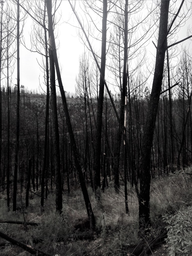 Una vez vueltos a la N2 entramos en un territorio dominado por la tristeza. No es exagerado hablar de naturaleza dolorida. Miles de hectáreas de arboles quemados que, para más dolor, apuntan al cielo desnudos y negros.