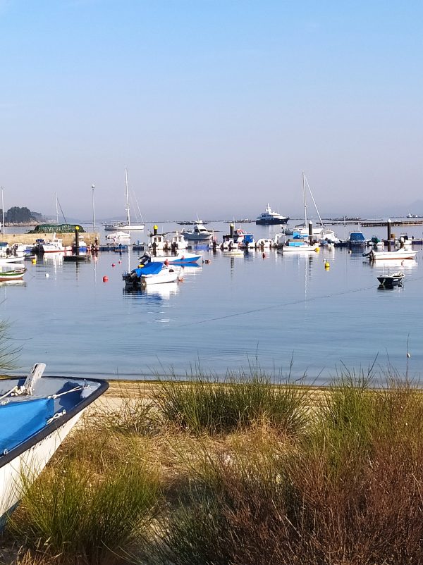 Vilariño es un largo arenal con muchos barquitos atracados.