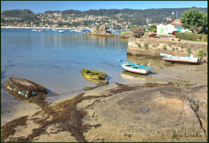 Intentamos circundar toda la ría para ver las muchas playas y calas, pero con Kapu es un problema por las llamadas carreteras que son calles. Hicimos una parte andando y otra la dejamos por estar muy lejos. En wikilock hay muy buenos recorridos desde el Cabo Udra hasta Aldán, y desde Aldán hasta la punta de Couso.