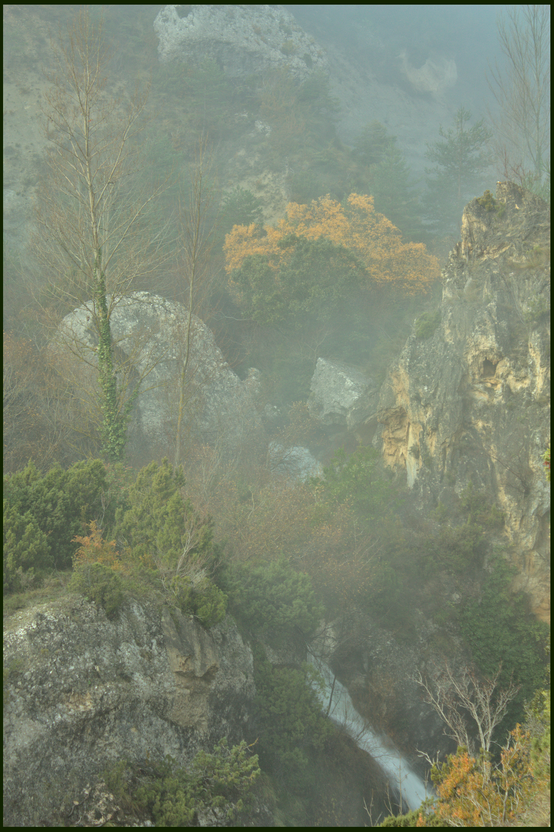 Nos habían comentado el recorrido de las Diaclasas de Cornejo. Ha sido la única decepción en todo el viaje. La niebla otra vez. Y la corriente del río no dejaba pasar a la zona interesante, que después de una buena vuelta estaba justo al lado de donde habíamos aparcado. Mucho recorrido para poco premio.