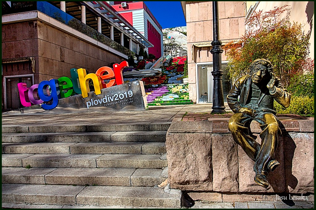 Domingo de Ramos, trece de abril, llegamos muy de mañana a Plovdiv. Una de las atracciones es un puente con tiendas, pero de poco interés. Pero la ciudad preciosa. Un ambiente muy religioso, cada oveja a su iglesia. En ambas estaban las máximas autoridades eclesiástica con pompa y boato. Por si acaso cogemos ramos de los ortodoxos y de los romanos. Soleado, mucha gente por las calles, familias enteras endomingadas. En una de las colinas, en la parte vieja, ruinas de castillo y de camino, teatro romano, restos de un estadio. Mucha historia. Fue ciudad cultural del 2019 (junto a Matera en Basilicata,Italia). Volvemos a hacer un alegre desayuno copioso tipo inglés en plena avenida. Y no sé si empujados por el agradable día o por una alucinación, en vez de bajar directamente a Edirne que está al lado, nos vamos a Sofía.