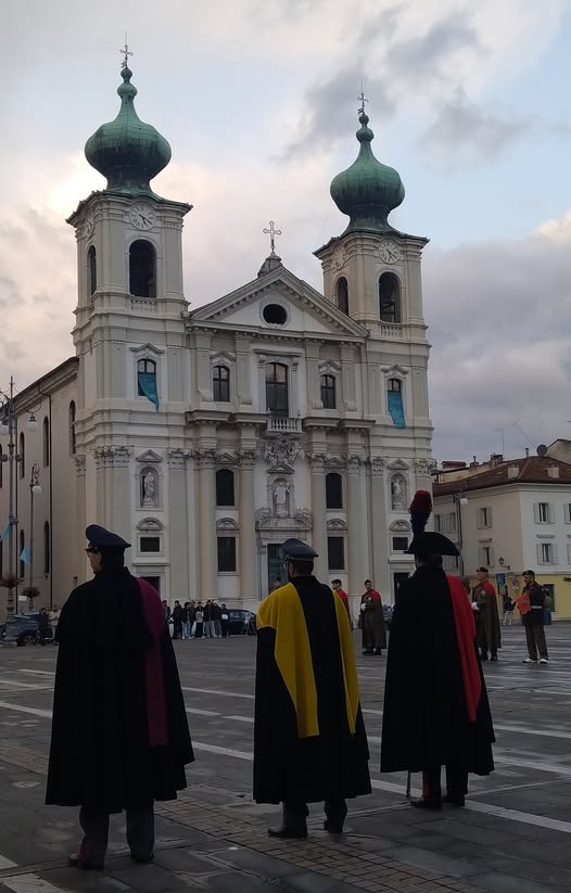 Espectacular. Babeando bajamos a Grado. Dicen que nació cuando Atila pasó y destruyó Aquilea. Entonces era una isla. Agua por todas partes para ver si los otros se ahogaban y pasaban a otros lares. Una coqueteria muy de disfrute veraniego. En estas fechas gélido. Optamos por irnos a otro sitio que no conozcamos. Gorizia. Es ciudad frontera con Eslovenia, antigua parte de Yugoslavia y el trozo de Gorizia que no se la quedaron los italianos se llamó Nova Gorica. Son las llamadas Ciudades Transfronterizas y ejemplo de lo arbitrario de los repartos de la guerra. Ahora tienen fronteras abiertas. Y cuando llegamos estaban en plena celebración por ser ambas Capital Cultural Europea y de paso ser la primera ciudad Transfronteriza en conseguirlo. Visita bonita y divertida. Sobre todo cuando admiramos como les gusta a los italianos el boato y los disfraces militares de lo más coloridos.