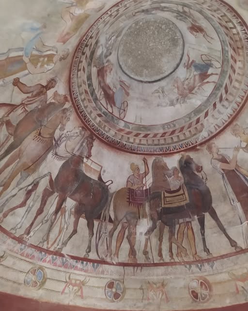 Vemos el Monasterio Dryanovo. No entendiamos la razón de tantos monasterios ortodoxos, muchos pequeños. Nos comentan que las iglesias ortodoxas son normalmente muy nacionalistas (algo sabíamos de la separación de la Iglesia Ortodoxa ucraniana por la defensa cerrada de la invasión rusa por el patriarca ruso) y en esos pequeños centros se cultivaba ese nacionalismo en época otomana. Yo creia que al igual que en Normandía o lo que hemos visto en Hungría, los monasterios eran centros de expansión de la religión en zonas no creyentes o de creencias equivocadas como dicen ellos. Subimos hasta el Monasterio Sokolsky. Tenemos la suerte de ver un bautizo y nos invitan los padrinos a bizcocho y leche , no por ser guiris, sino como tradición a todo el que se acerque. De camino hemos visto el parque Etara, réplica búlgara del Parque de Astra en Rumania. Subimos por carreteras montañosas y bajamos hacia el valle de las rosas. Nos sorprende la iglesia cebollona dorada de Shipka. Debe ser muy visitada. Erigida en honor a rusos y búlgaros muertos contra los otomanos. Realmente nuestro objetivo son las tumbas Tracias de Seuthes III y la réplica de la de Kazanlak . Ya casi merecían ellas solas el viaje a Bulgaria.