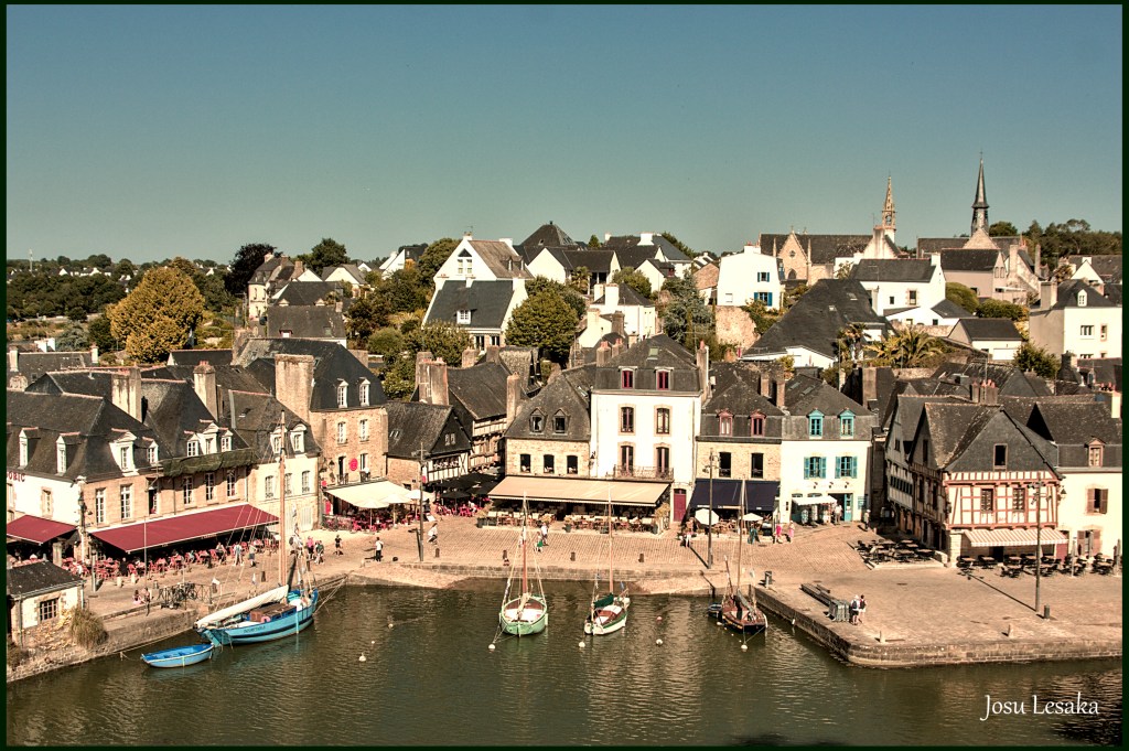 Quimperle, es muy bonito. Ya estamos en la región de Finisterre. Pequeño puerto medieval. Al estar tan lejos del mar, los puertos medievales sorprenden por el barro. Iglesia curiosa tipo templo de Jerusalén.