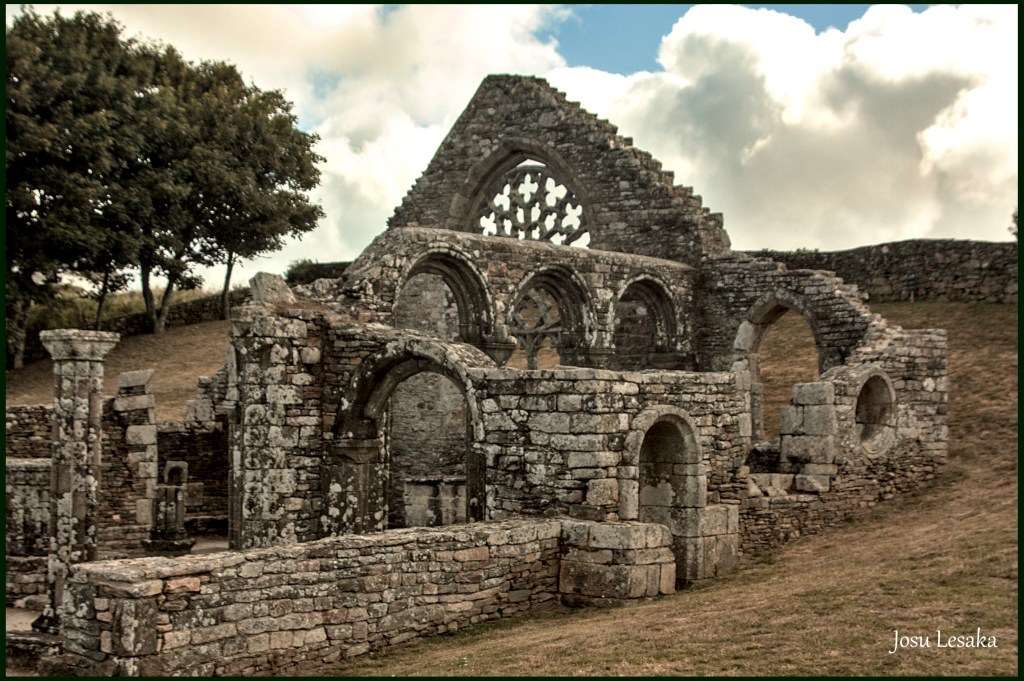 De camino a las ruinas de la Abadía de Landavennec, uno de los centros monásticos más importantes anteriores a la orden de los benedictinos, pertenecientes a los escotos o cristianos celtas, vemos otro cementerio de barcos, este militar. Parece que les gusta Finisterre para dejar la chatarra. Junto a las ruinas hay otra abadía benedictina que no visitamos.