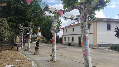 Después de la sorpresa de haber hablado con las creadoras de abrigos de los árboles, que últimamente hemos visto en bastantes sitios, pero que se hacía difícil de imaginar en Moratinos, y después de enseñarles nuestro blog y ver el Bosque encantado del valle de Caderechas llegó el momento Axe.