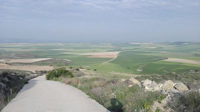La salida de Castrojeriz es espectacular, ya que hay que subir al páramo y se hace en poco tiempo y buena pendiente. Pero entre jadeo y jadeo, cuando miras atrás la vista del valle, del castillo y del pueblo es espléndida, con el sol saliendo por detràs.